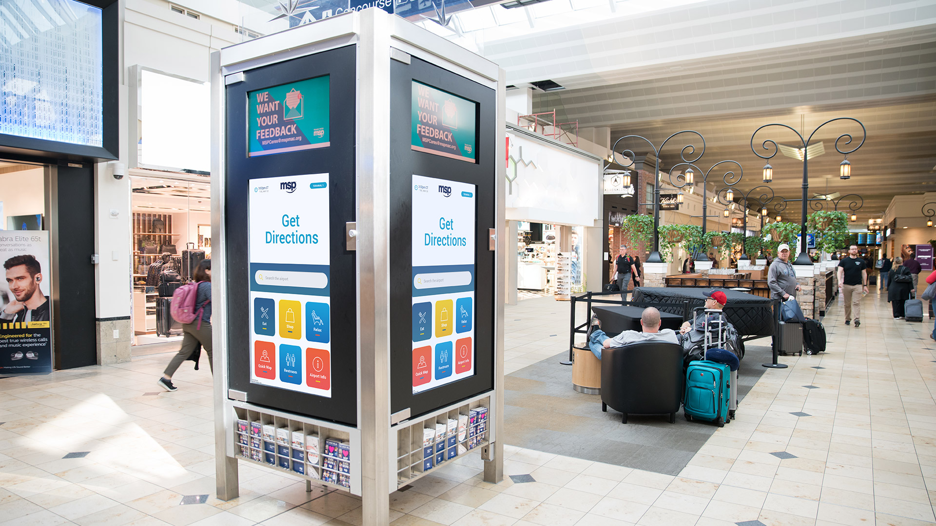 - Air travelers enter a flight or destination, find the gate number and learn where they can buy coffee on the way there